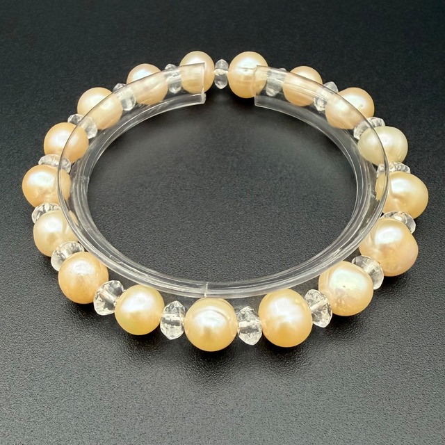 淡水パールは、自然の美しさをそのまま感じられる優雅な天然石で、多くの方に安らぎと美しさをもたらす特別なアイテムです。このブレスレットは、身に着ける人に清らかさと優しさを与える素敵なアイテムです。