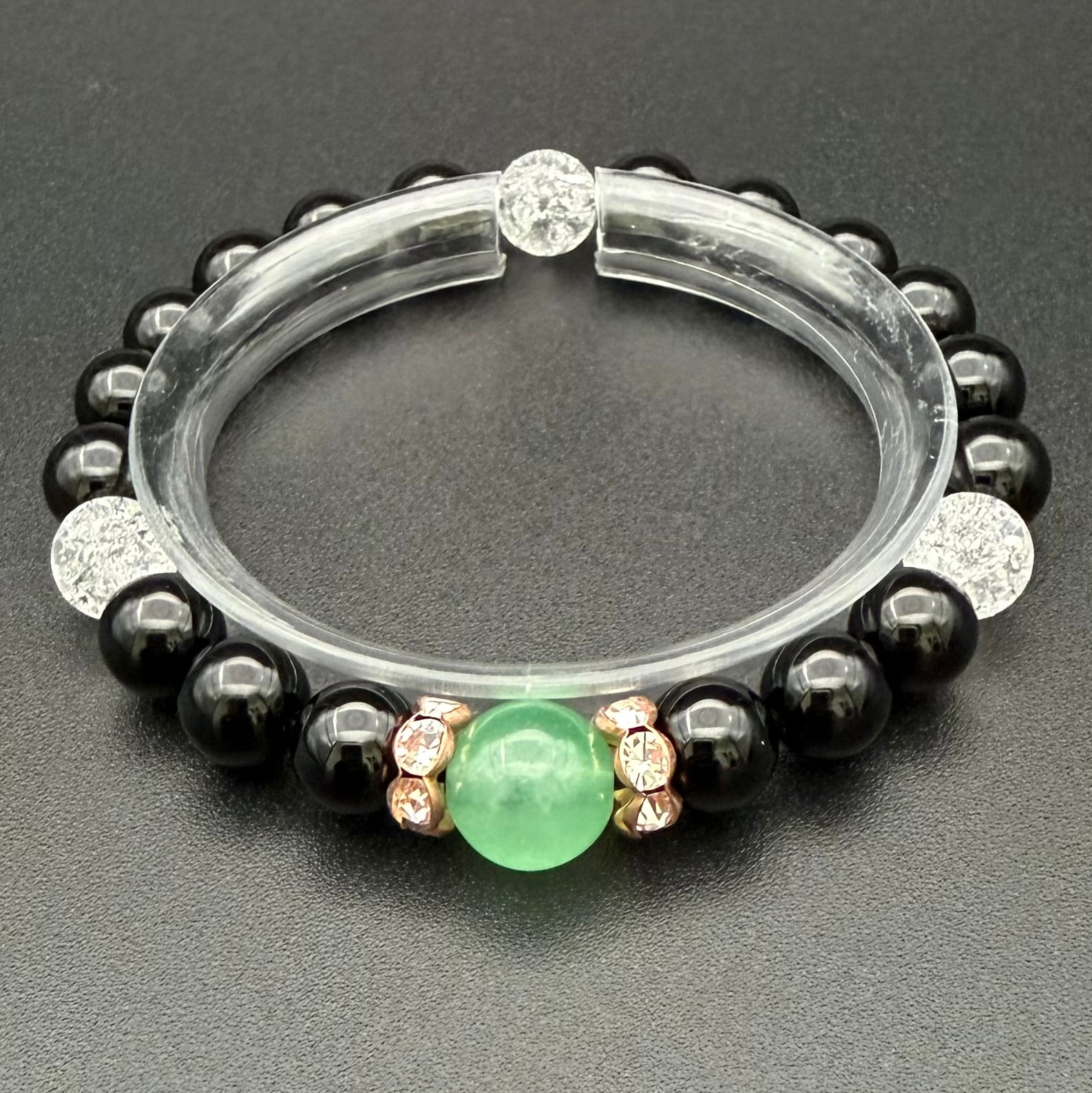 【商品名】5月誕生石8mmブレスレット(アベンチュリン&ブラックオニキス&クラック水晶)