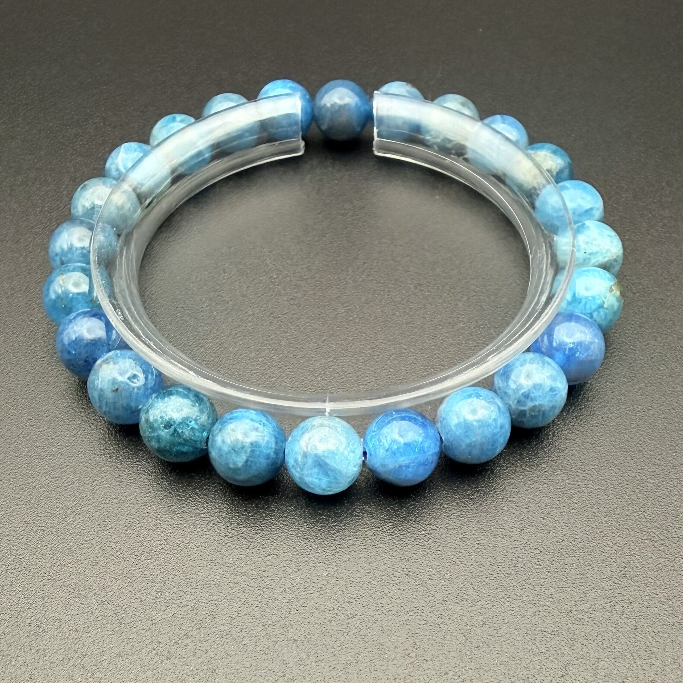 極美発色 ブルーアパタイト ブレスレット 8mm玉 内径16cm 天然石 絆の石