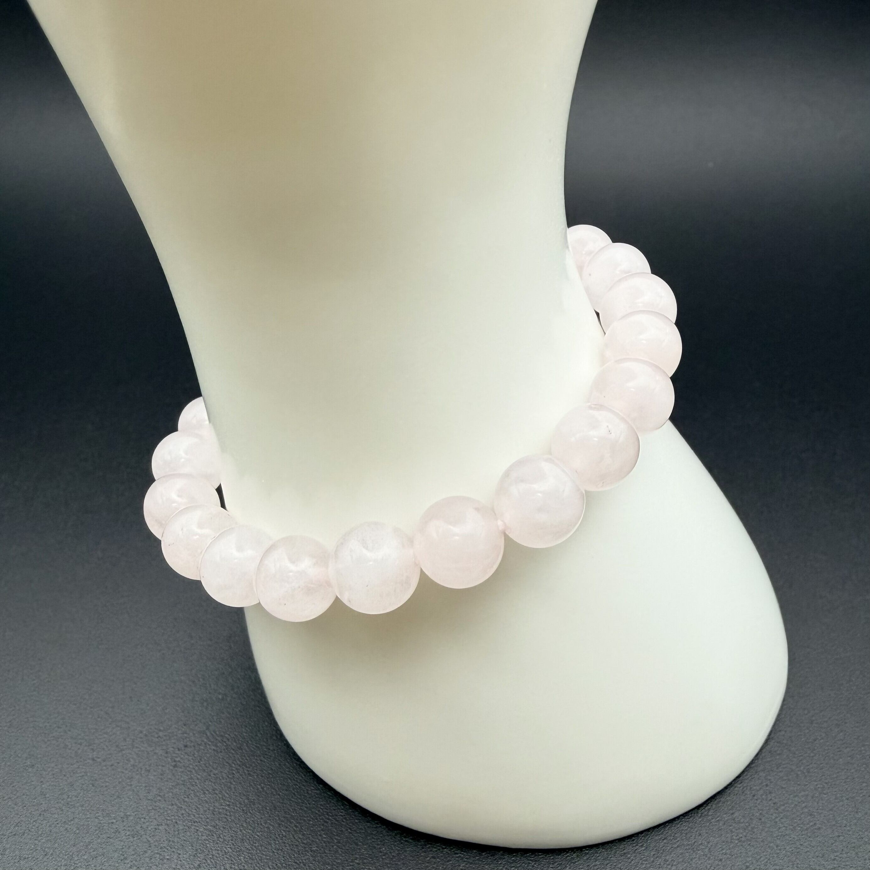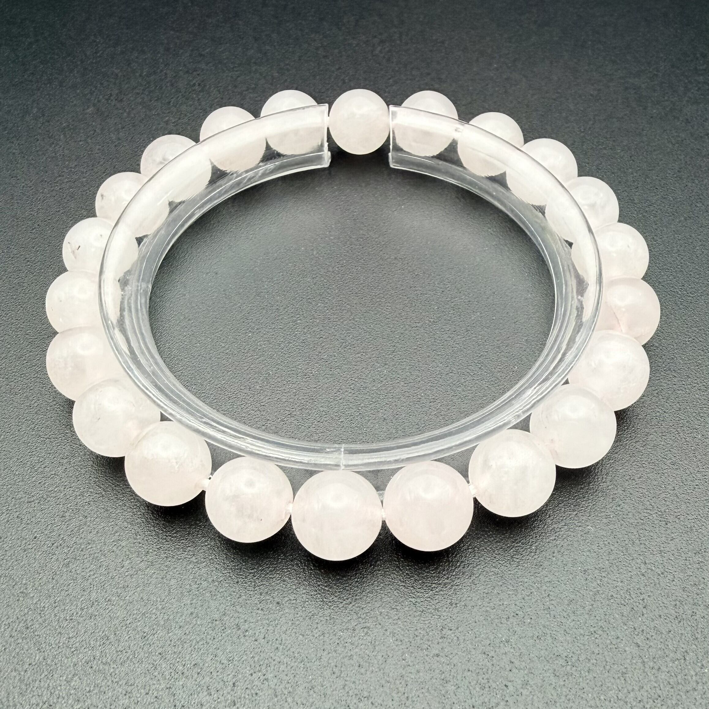 ほんのりとした淡いピンク色が美しい、天然ローズクォーツのブレスレットです。