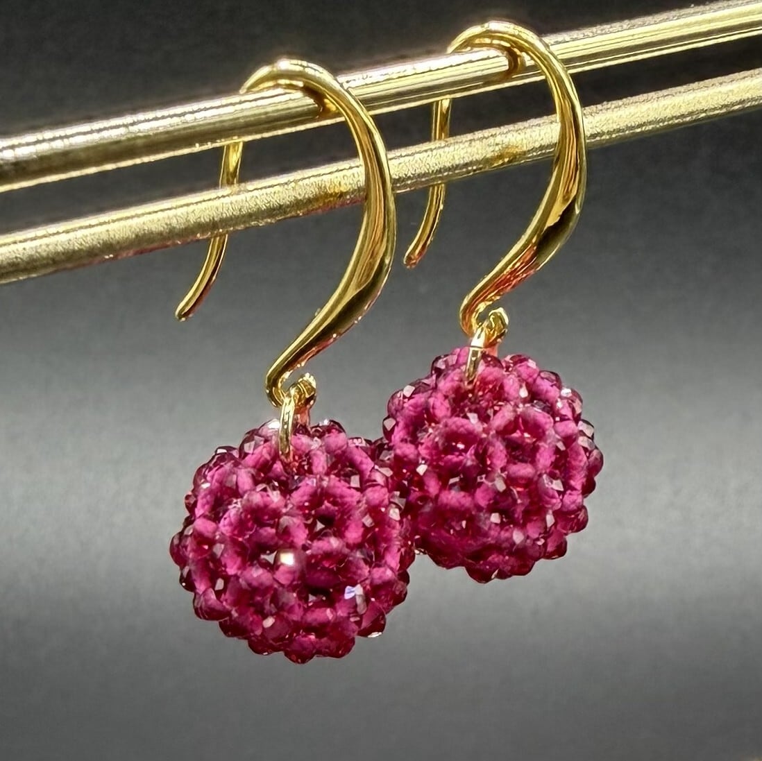【情熱を纏う】ルビー2mm玉フラーレンピアス パワーストーン
