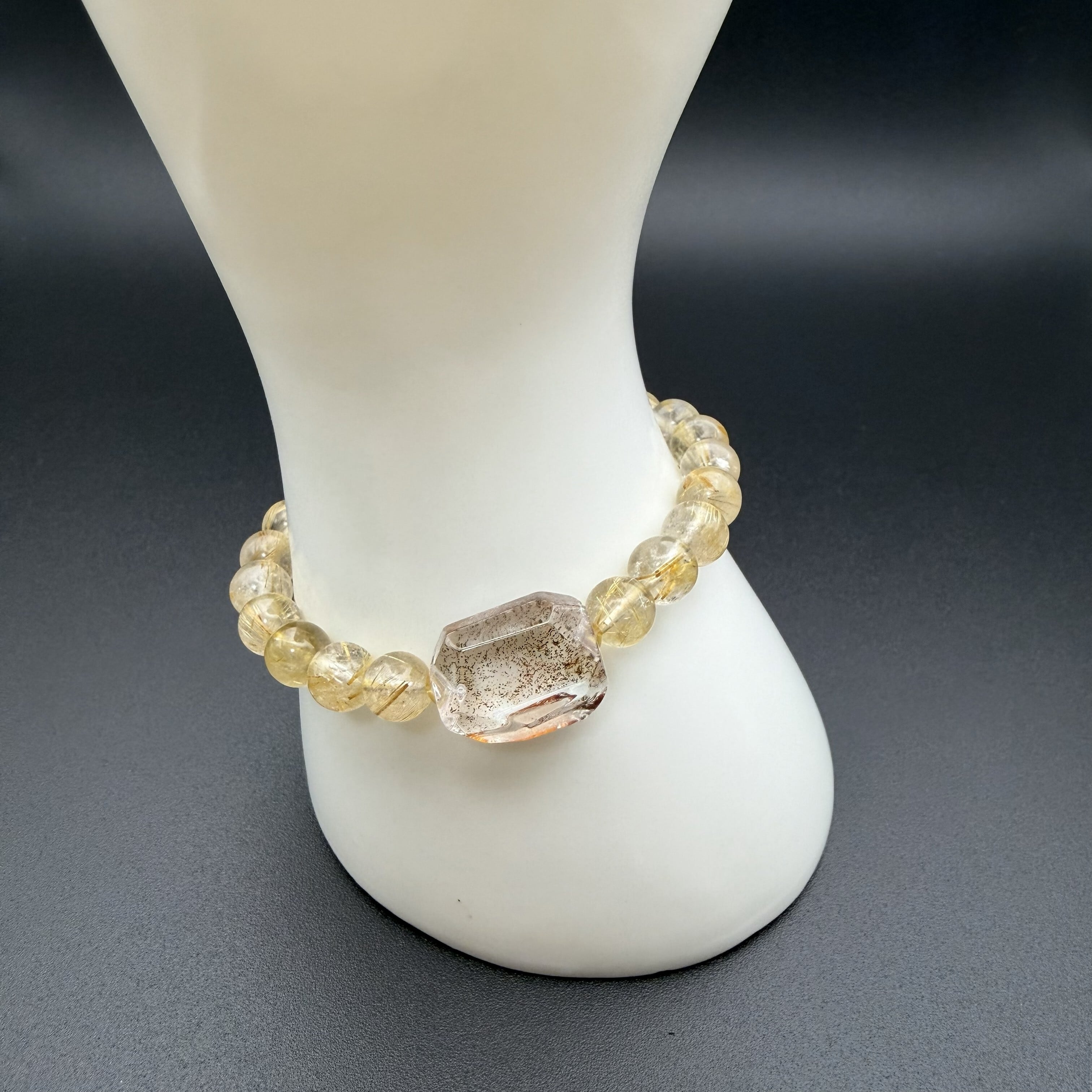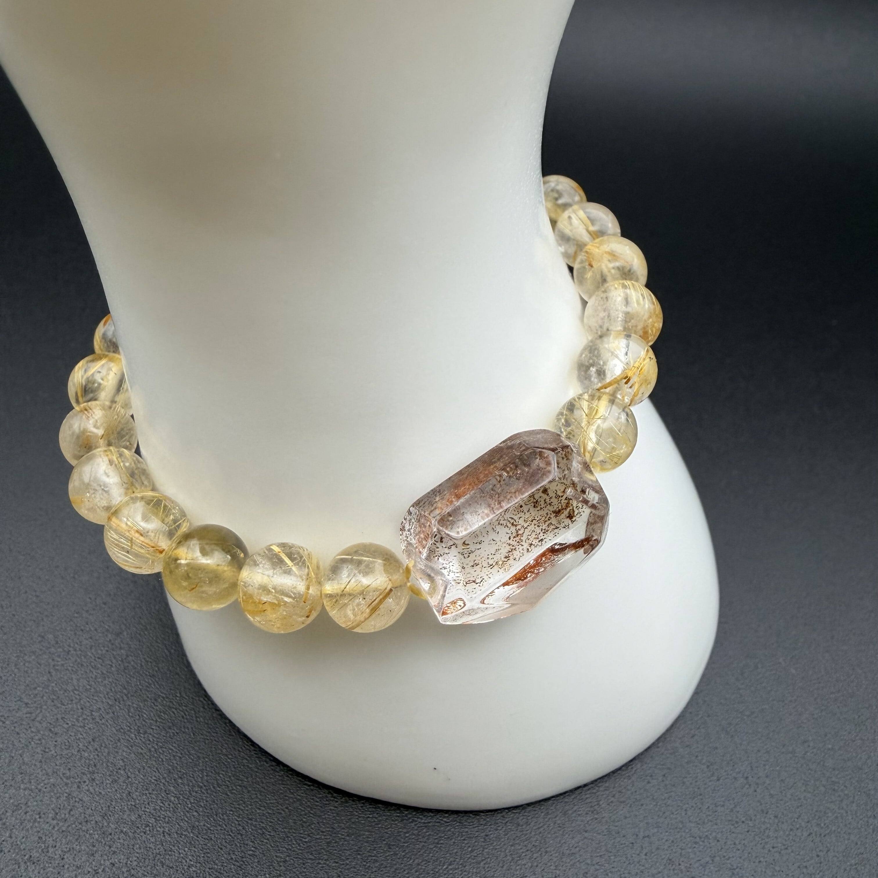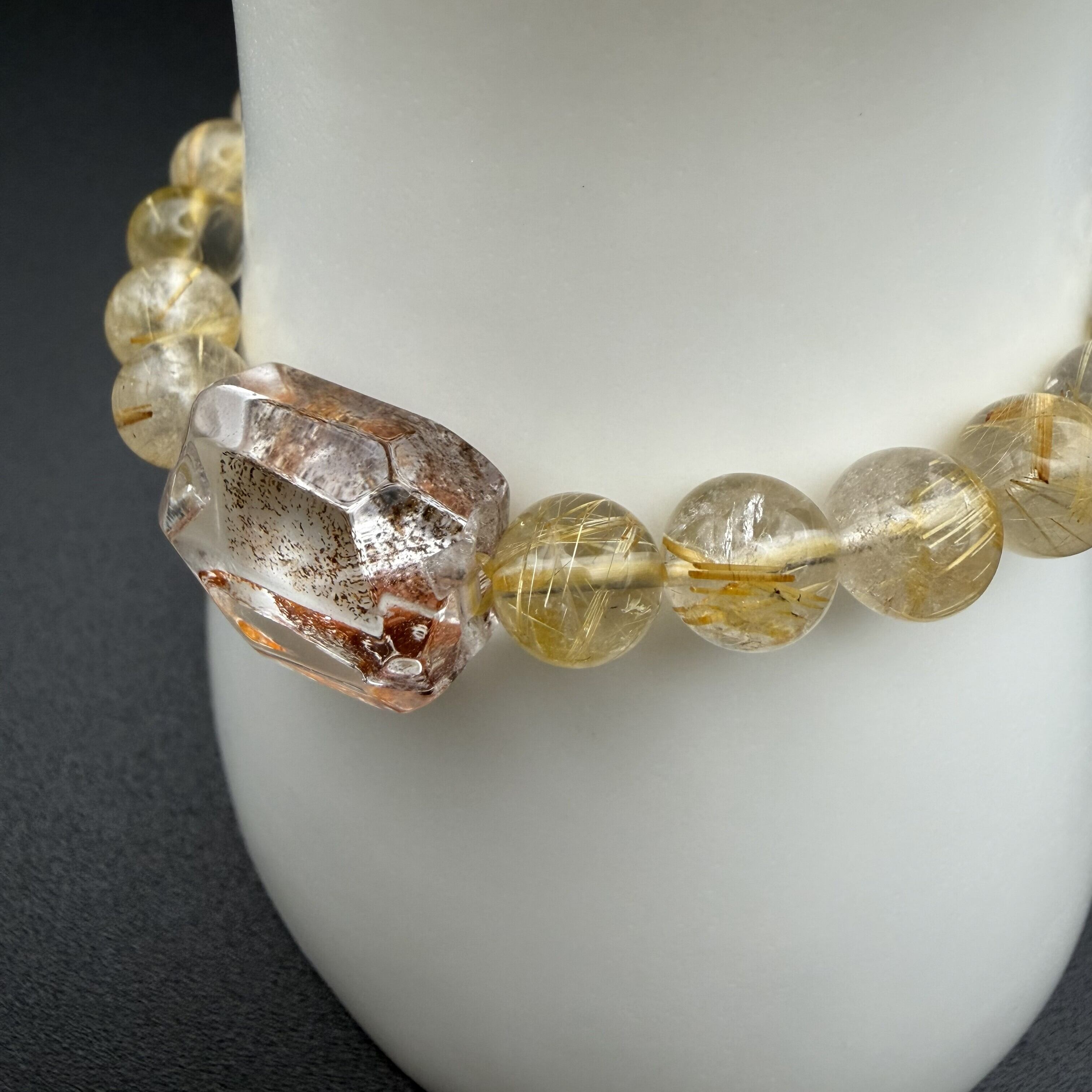 透明度!金針の輝き ゴールドルチル × 庭園水晶 ガーデンクォーツ ブレスレット