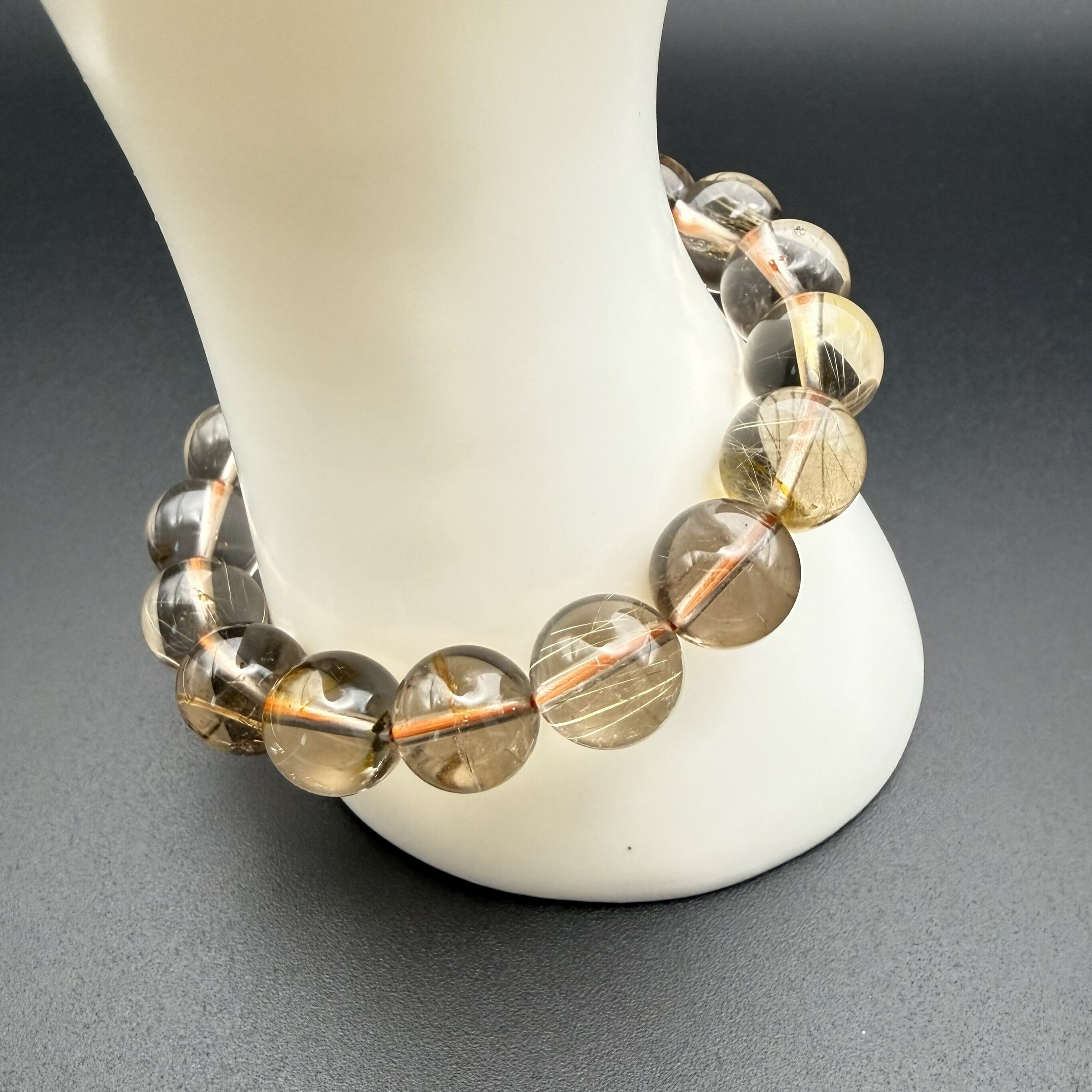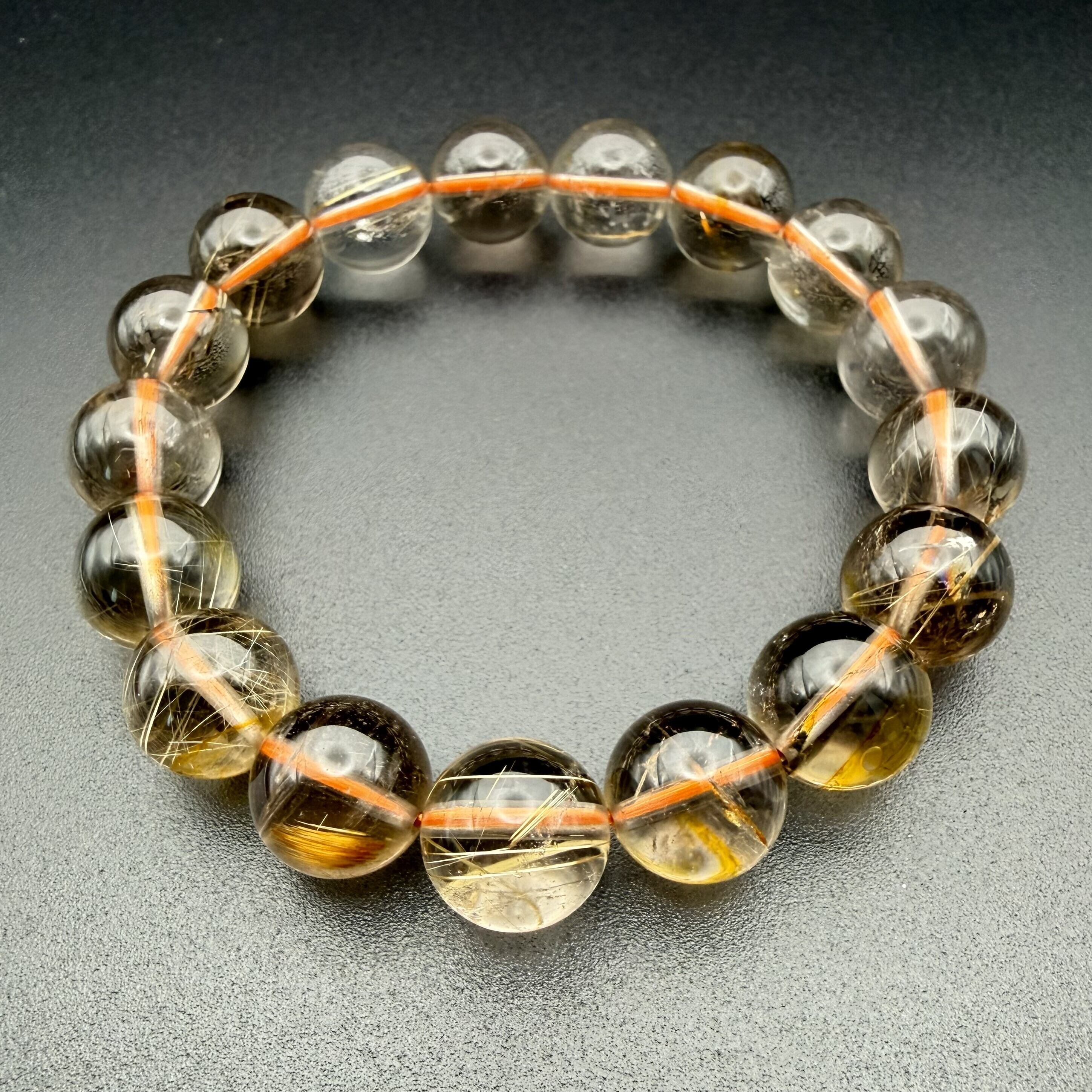 金運・財運の象徴として名高い「ゴールドルチルクォーツ」のブレスレットです。 水晶の透明度が高く、中のゴールドの針(ルチル)が美しく輝く良質な粒を厳選しました。