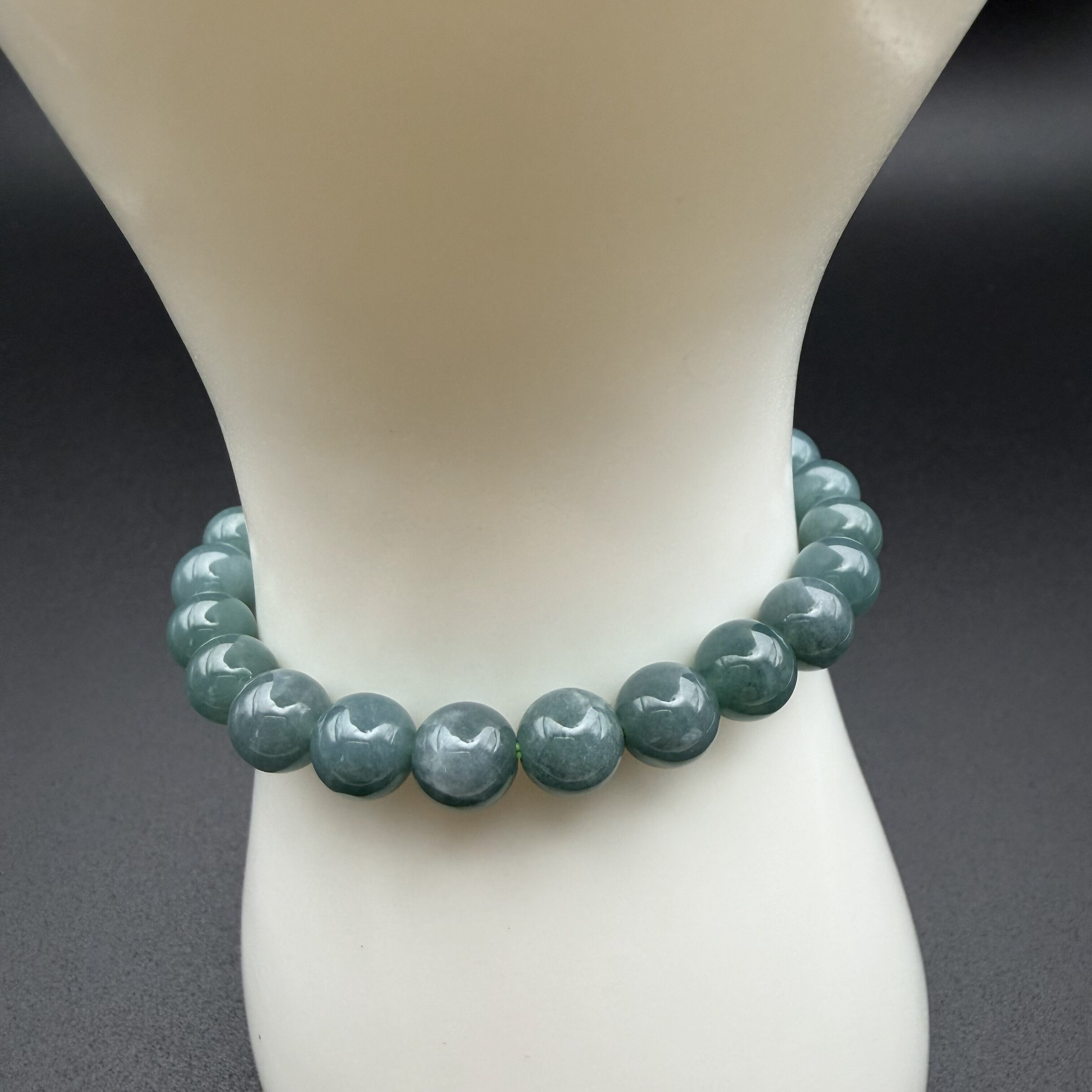 【希少なミャンマー産本翡翠】 落ち着いた深みのあるグリーンが美しい、ミャンマー産の本翡翠(ジェダイト)ブレスレットです。 肌なじみが良く、上品な光沢感が手元を華やかに演出してくれます。