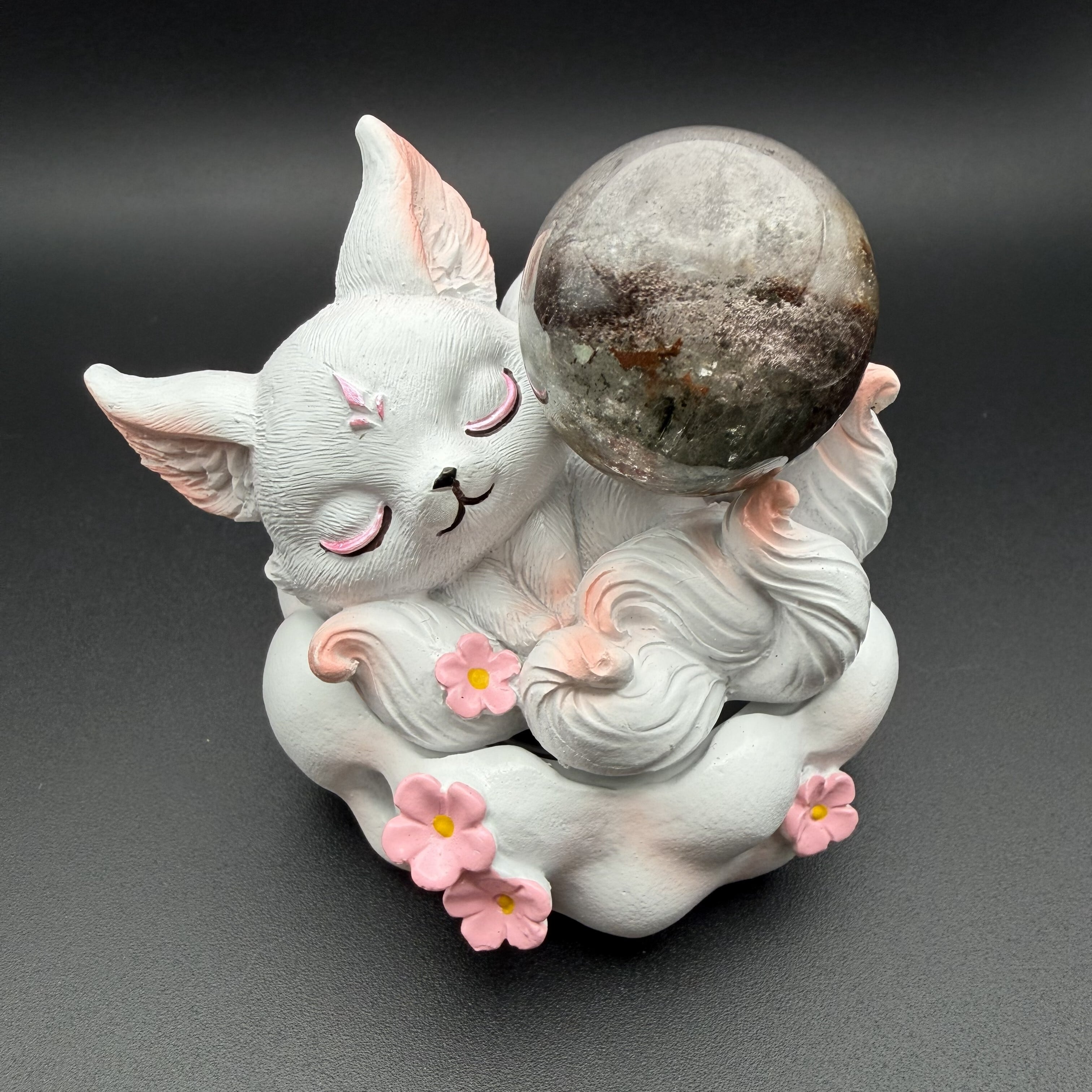 至福の浄化♡九尾の狐(ピンク) 香炉(龍涎香2個付)スフィア・天然石の浄化&癒やしに