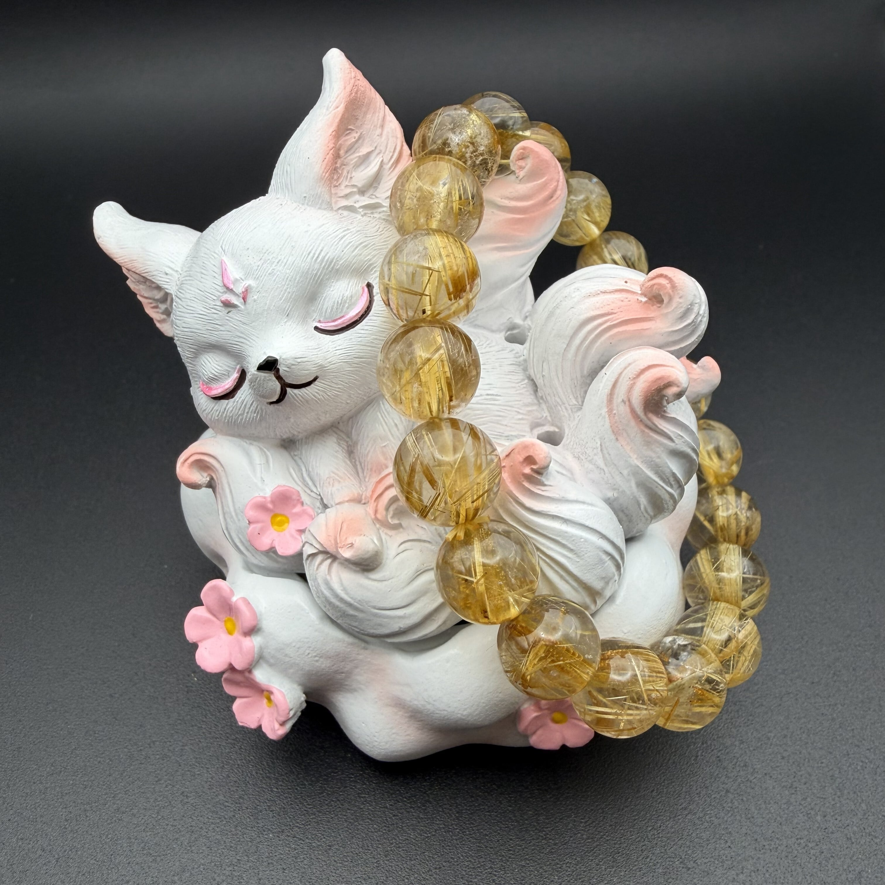 九尾の狐の尻尾が、お手持ちのスフィア(丸玉)やブレスレットを優しく包み込むような形状になっています。天然石を上に置くだけで、日々のネガティブなエネルギーをリセットする「浄化台」として最適です。