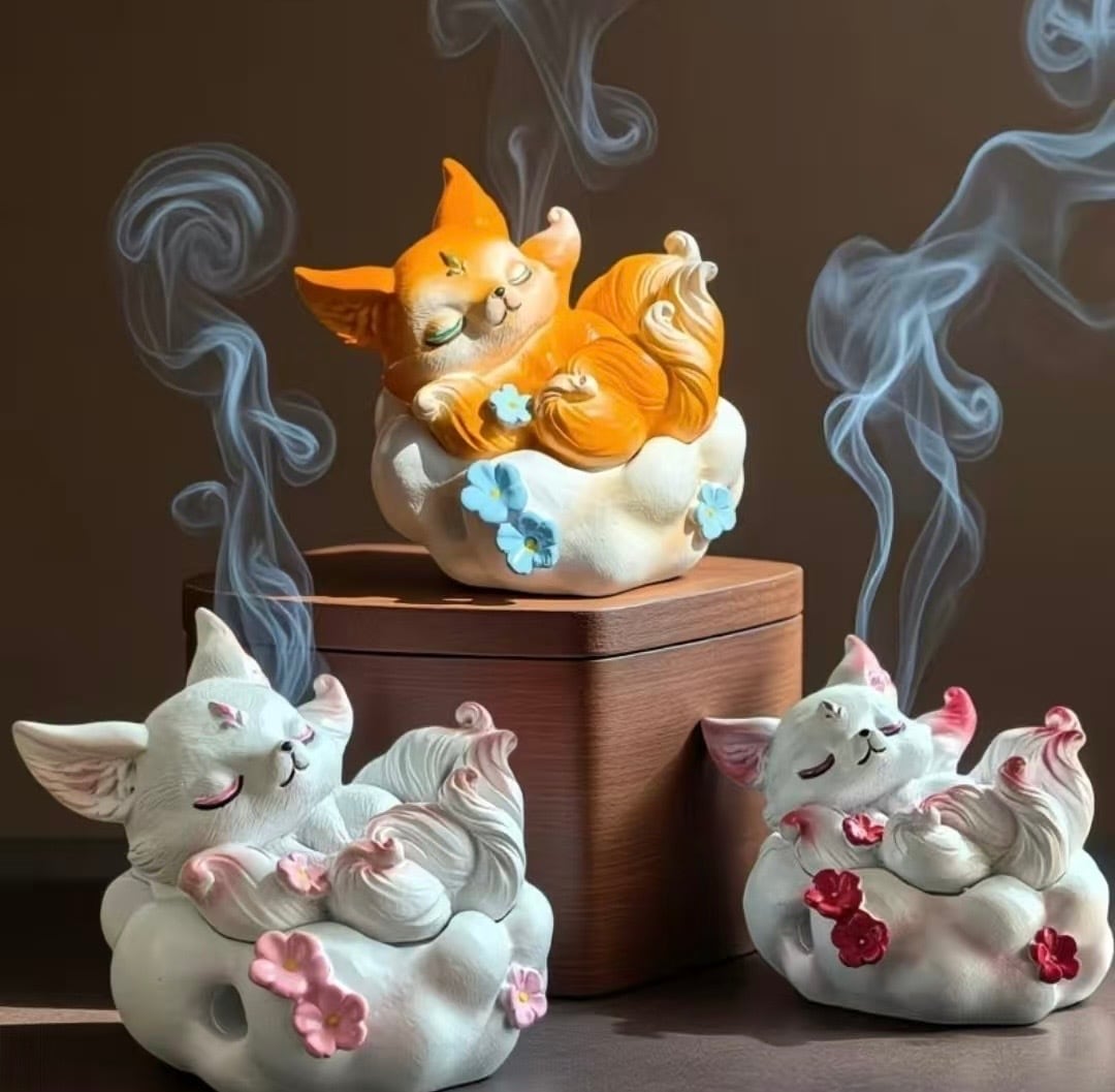 神聖な使いとされる「九尾の狐」をモチーフにした、幻想的で可愛らしい香炉です。