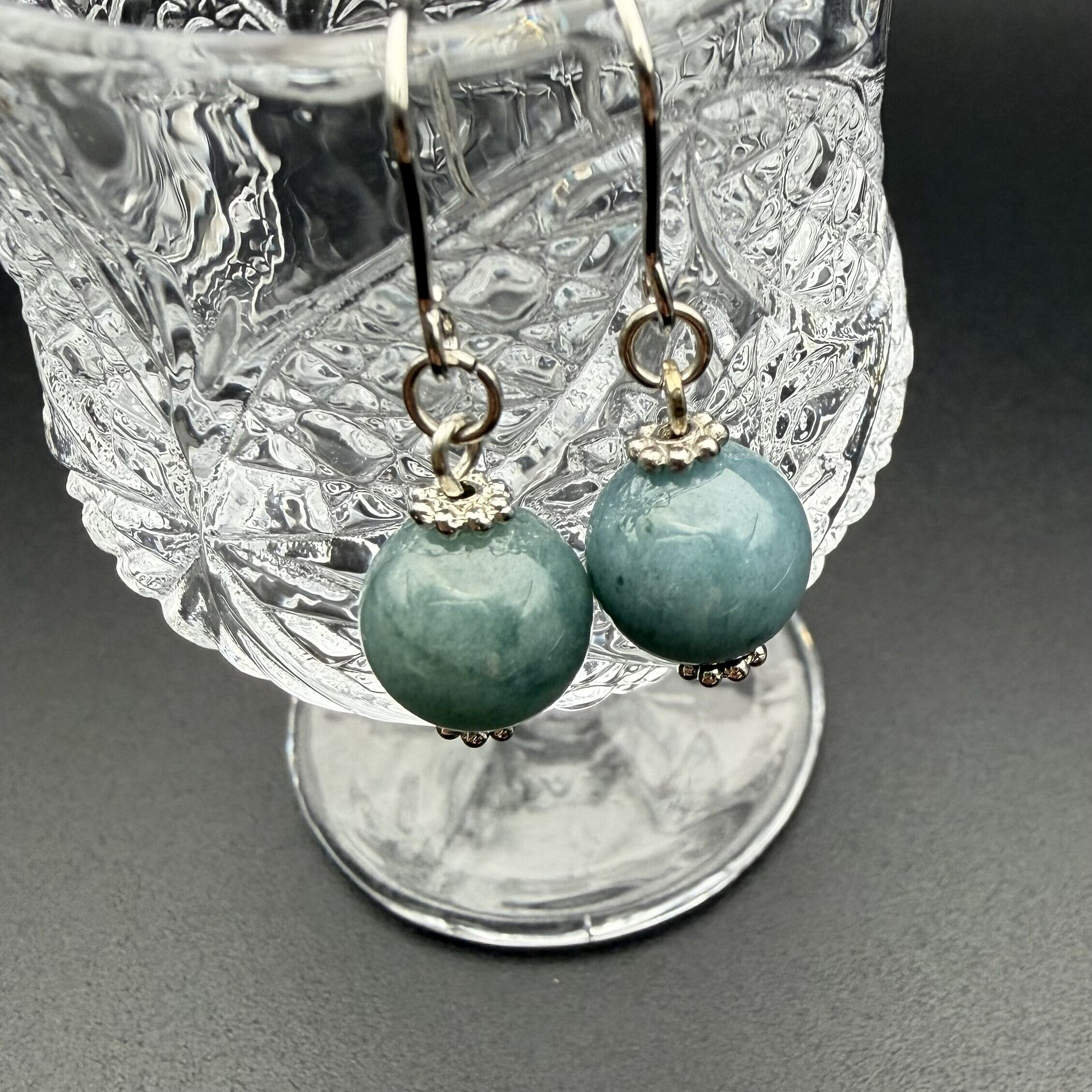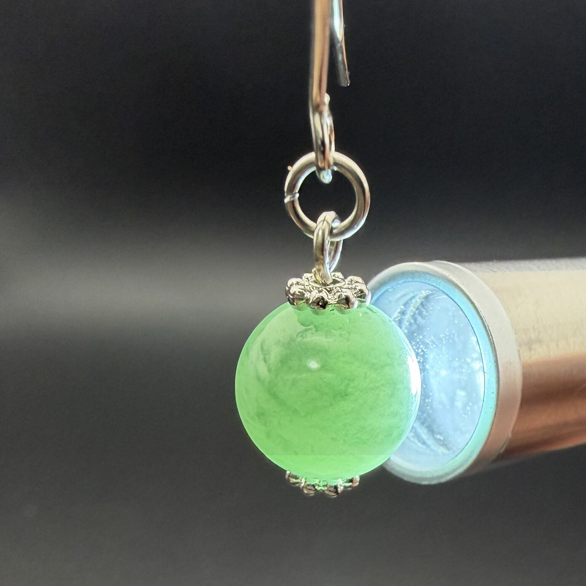 落ち着いたトーンのグリーンが美しい、大粒10mmの翡翠を使用したハンドメイド作品です。