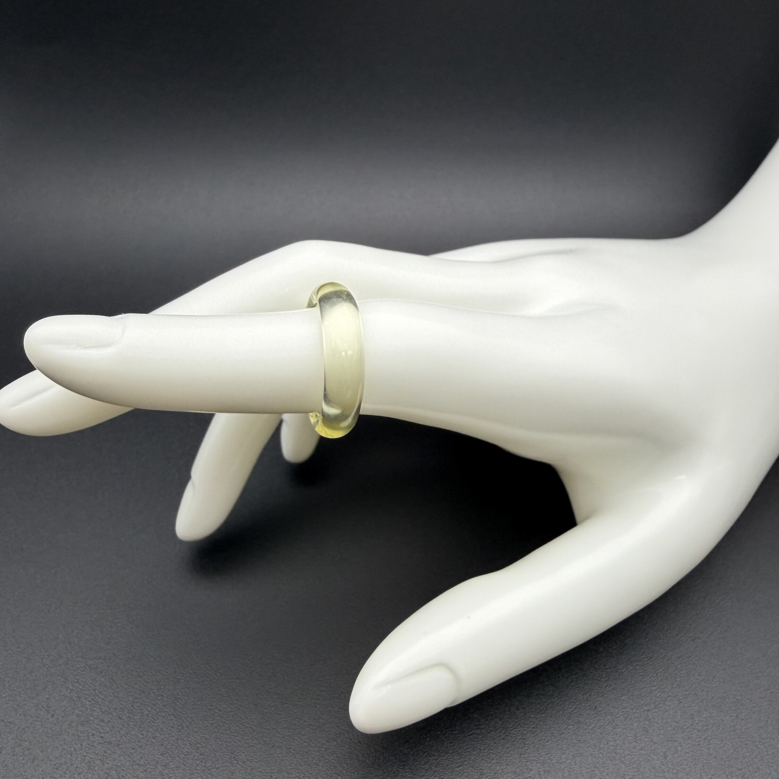 太陽の光を閉じ込めたような、温かみのあるイエローが美しい**「天然シトリン(黄水晶)」**のくりぬき指輪です。