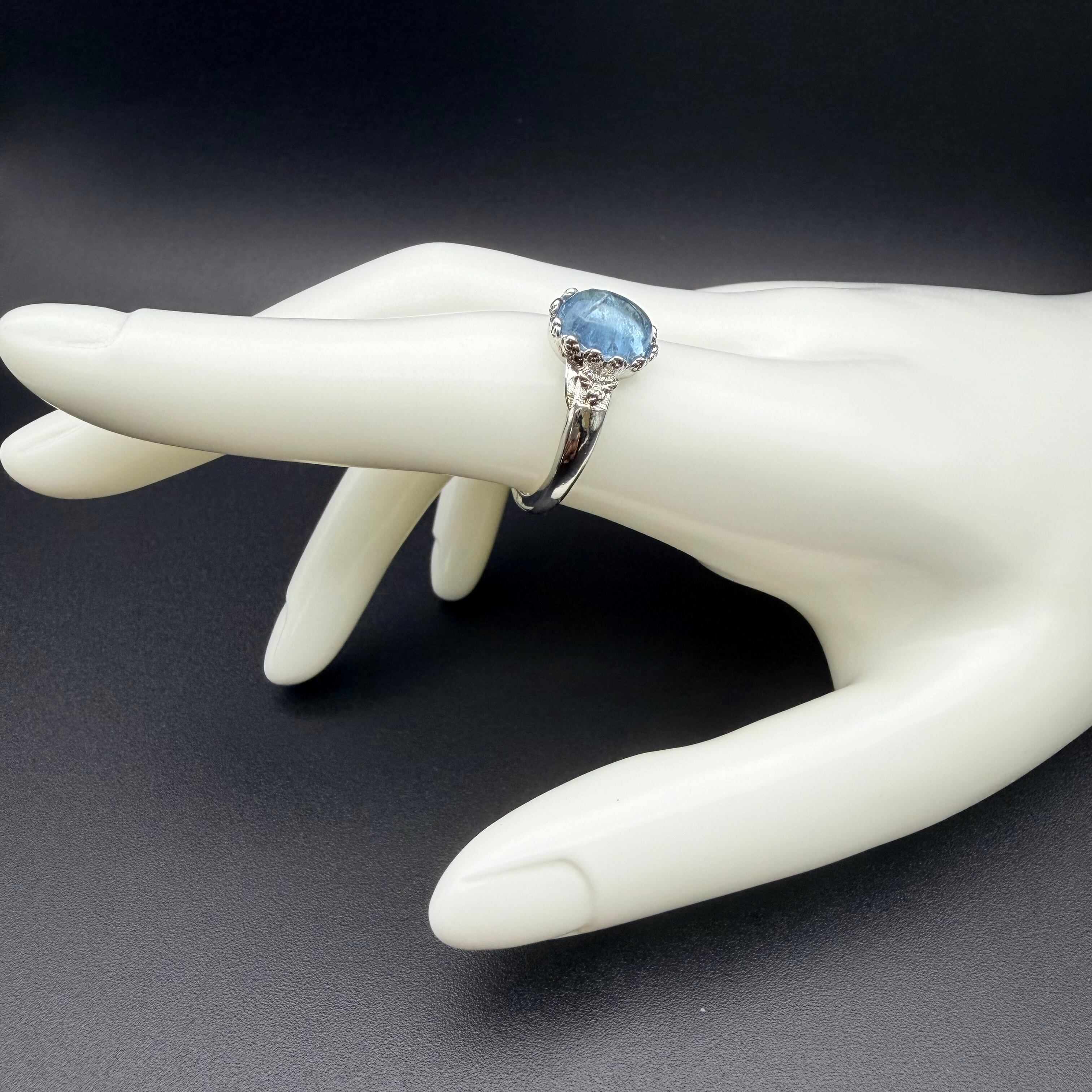 大粒2.5ctの存在感: 9mm×7mm×5mmのボリュームあるルースを使用。ぷっくりとしたカボションカットが、アクアマリン特有の優しい輝きを最大限に引き出しています。